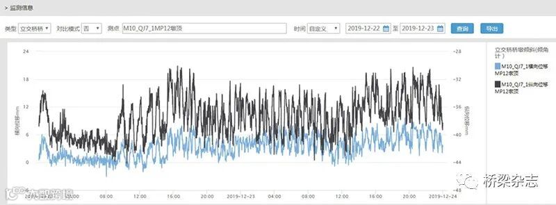 另外苏家坝立交的健康监测系统于2019年11月建成,虽然还未运行到一年的周期,我们调取了2019年12月22日(第十四期)当晚的数据情况做对比(如图3所示),图中显示在温度8℃-10℃时,MP12号墩24小时的最大位移量约为10mm左右,与采用新方法的后三期数据情况完全吻合。