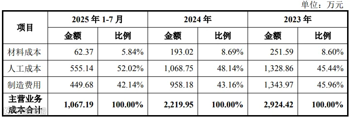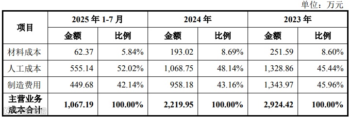 标的公司主营业务成本构成如下所示: