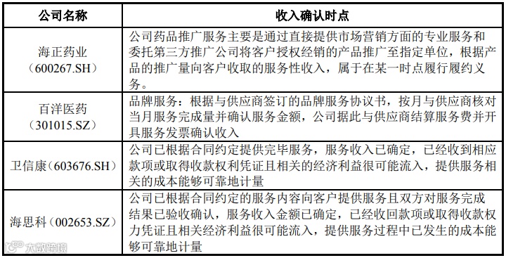标的公司销售推广服务得收入确认政策与同行业可比公司一致,如下表所示: