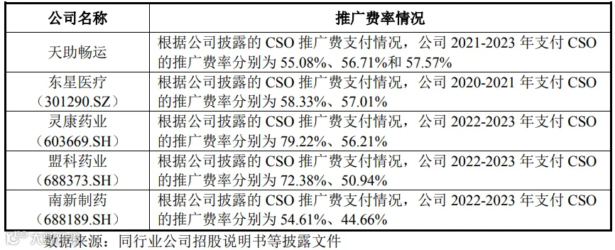 标的公司为江苏先声提供销售推广服务,费率与同行业可比案例对比如下表所示:
