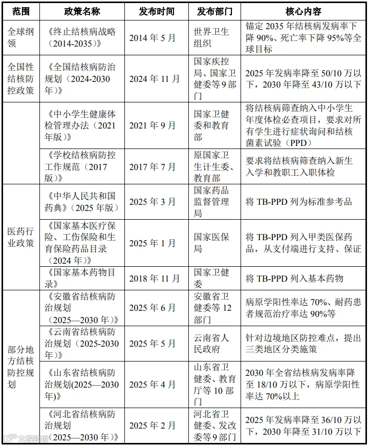 TB-PPD具有技术安全、成熟、灵敏度高(基本保证不会漏诊)、无需实验室等特点,是大规模人群结核病筛查的主要手段。我国结核防控的相关规划、政策使得我国结核防控对该产品有明确的需求、为标的公司产品提供了较大市场发展空间。