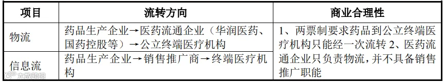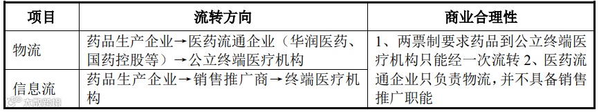 标的公司系为江苏先声药业有限公司(以下简称“江苏先声”)提供销售推广服务。医药行业因实行两票制,且我国公立医疗机构普遍实行“指定配送商”的商业模式,因此从物流上,药品生产企业普遍将产品销售给华润医药、国药控股等医药流通企业,另聘请销售推广商负责产品的学术推广等销售推广活动。