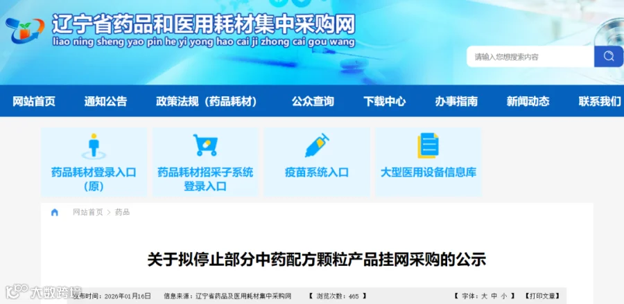 来源:辽宁省药品及医用耗材集中采购网