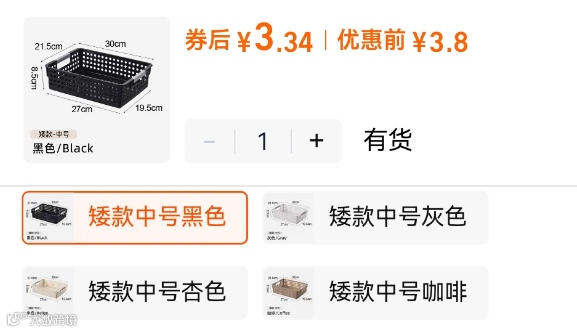 一款10件装小型收纳篮售价约167元,淘宝同款10件仅33元,极具利润空间。