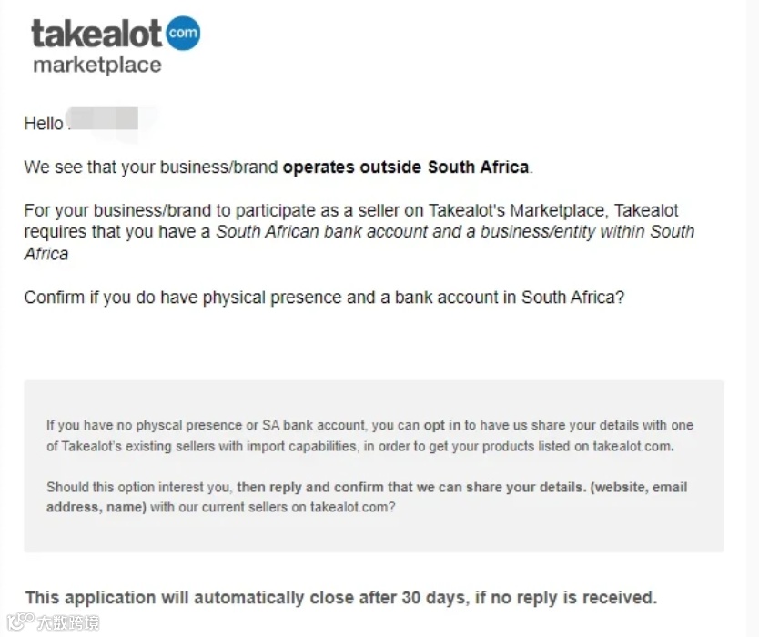 Takealot在中国的招商工作由授权代理公司负责,目前仅有两家国内公司获得官方招商授权。