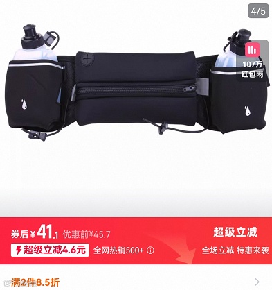例如一款带水壶的运动腰包,售价约104元,淘宝同款仅41元,若自有工厂成本更低。