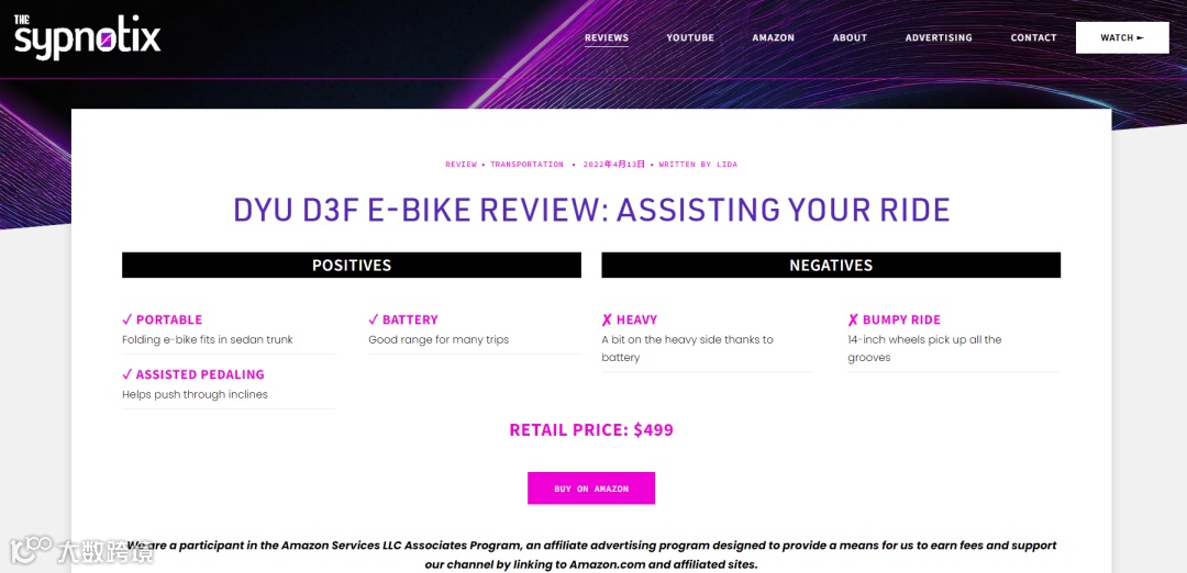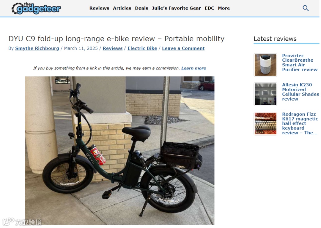 The sypnotix是一个专注消费电子的垂直科技博客,DYU向该博客寄送了一台D3F电动自行车以供测评。最终博客成功上线了该产品的实测文章,其中还附带编辑实测的实地骑行视频,全方位展示了一款物超所值的通勤自行车。
