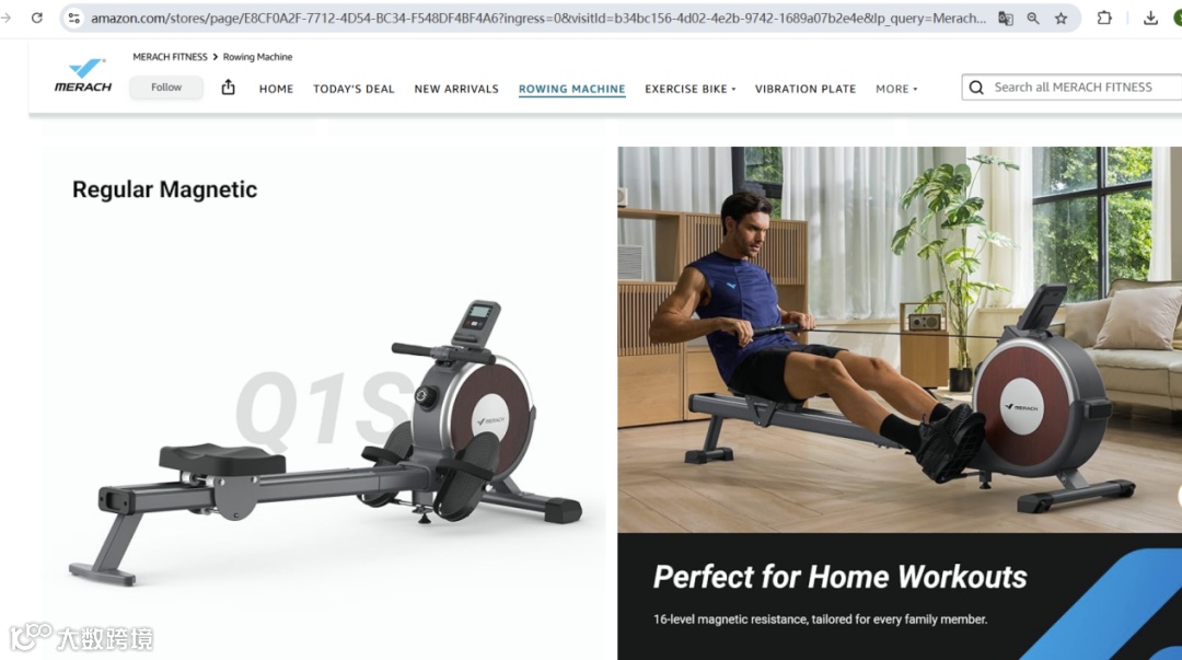 图源:merach在亚马逊主推划船机等偏大件、适合货架式电商的产品;多数产品销量可观,月销可达1000+。