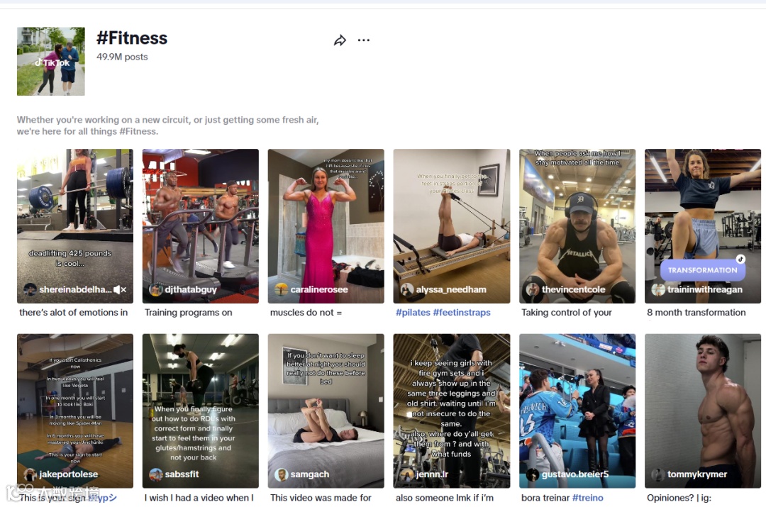 社交媒体上,健身内容的传播势头惊人,已成为广泛关注的热点。腹肌、马甲线等视频点赞数破万已成常态,健身直播更是频频爆红。仅Tiktok上关于fitness(健身)的视频有499万条,单条视频播放量最高可达百万以上,这股热潮不仅改变了生活方式,也催生了巨大的市场机遇。