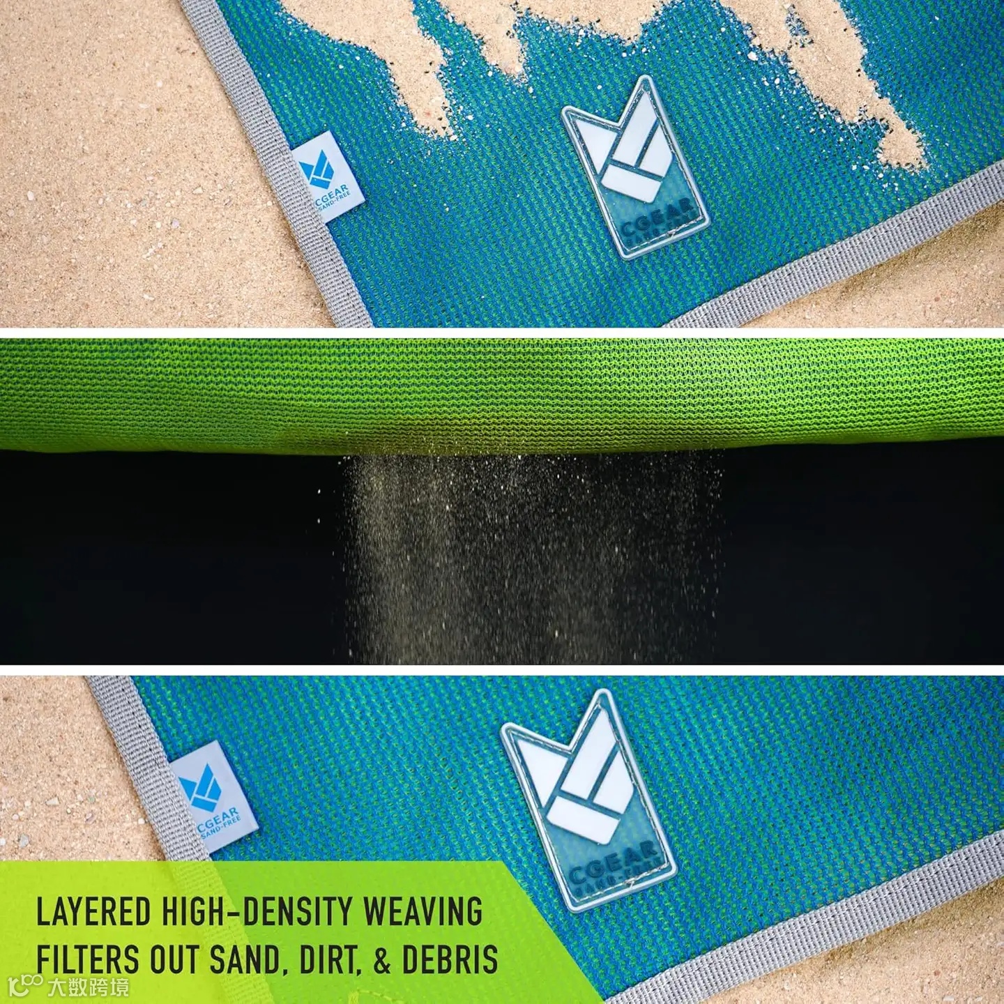 这款原创的筛沙垫来自品牌CGEAR,提供的最小尺寸为约1.8米的正方形,售价$65;最大有3.6米的正方形尺寸,售价$145。这个定价与常规的沙滩垫、野餐垫相比可以说是高得惊人。对应的,其卖点也非常突出,除了能筛沙防沙之外,其高密度材质还具备高耐用度、快干、防水且防紫外线的特性。