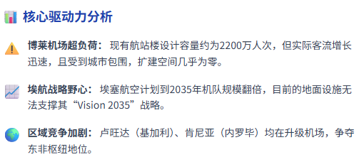 项目一旦建成,有望对内罗毕、基加利形成虹吸效应,并从迪拜、多哈手中争夺亚洲—非洲过境客流。