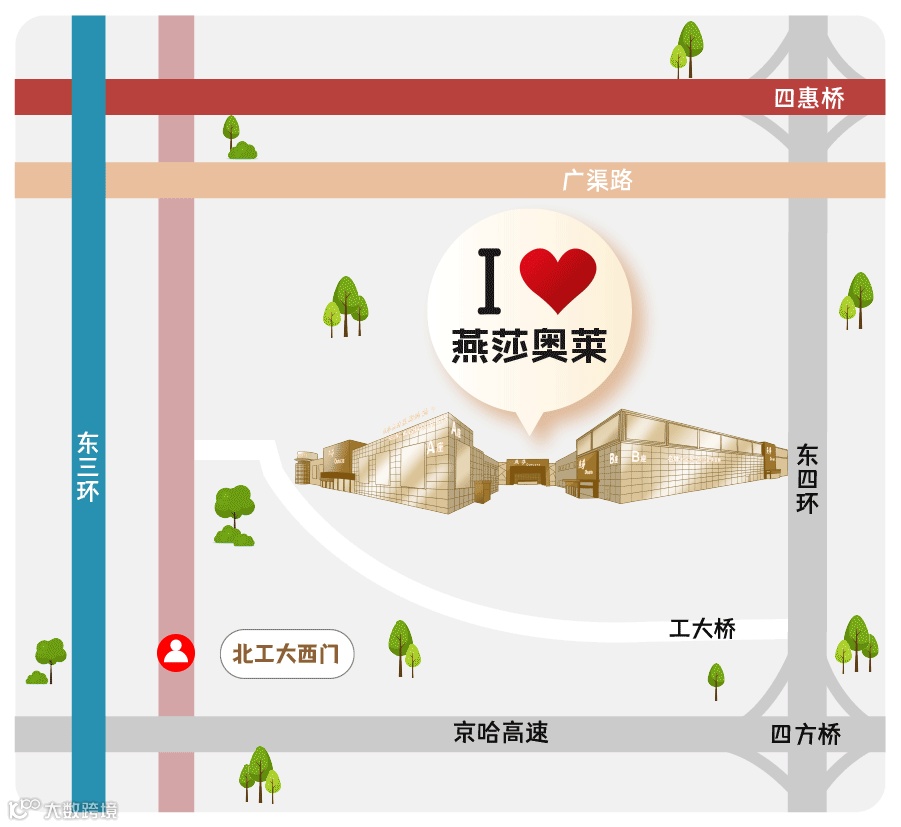 北京燕莎奥特莱斯购物中心位于朝阳区东四环南路9号,建筑面积近10万平米,免费停车4小时。