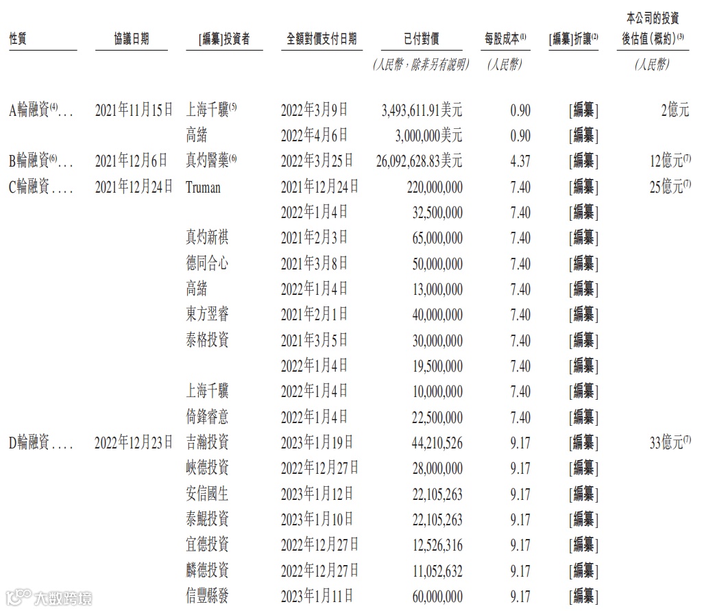 和美药业成立于2002年,由张和胜博士创立。据招股书,从2021年至2024年,公司累计进行了7轮融资,融资总额超过12亿元,投资方包括真灼投资、上海千骥、泰格投资、泰鲲投资、倚锋资本、君联资本、德同资本、东方创业、Truman等。截至2024年12月完成的E轮融资后,公司的投后估值达到39亿元,为首轮投后估值的约19倍。