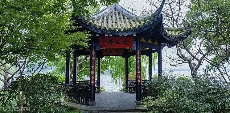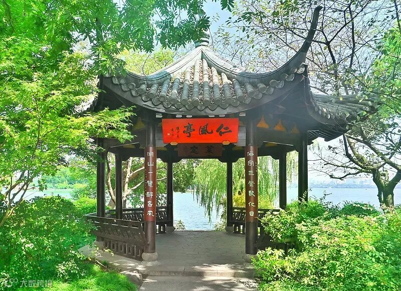 在湖光潋滟的岸边,仁风亭悄悄坐落于其。其命名与建筑特色均承载着对北宋文豪苏轼的深切缅怀,同时也是西湖文化景观的重要组成部分。 仁风亭为攒尖顶八角亭,飞檐翘角,六面设靠栏,采用传统木构架工艺,让它在波光柳色间显得格外出尘,体现了中国传统的审美特点。