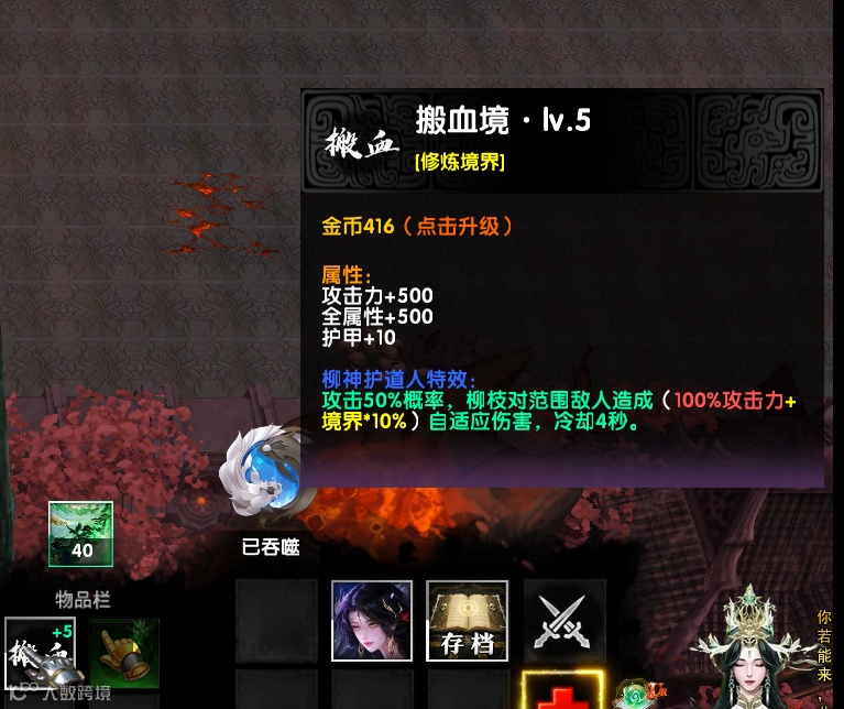 金币的主要用途是点击升级搬血境,是前期提升战力最快的途径。