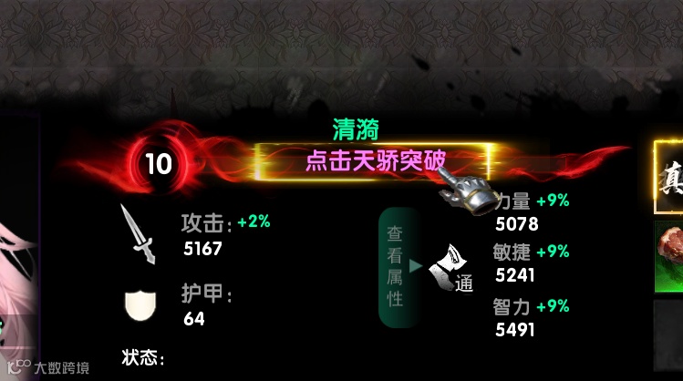 每达到一个大境界,都会获得珍贵的境界加点,战力不足时可以优先加攻速,因为高攻速能更快触发各种技能特效,是收益非常高的属性。