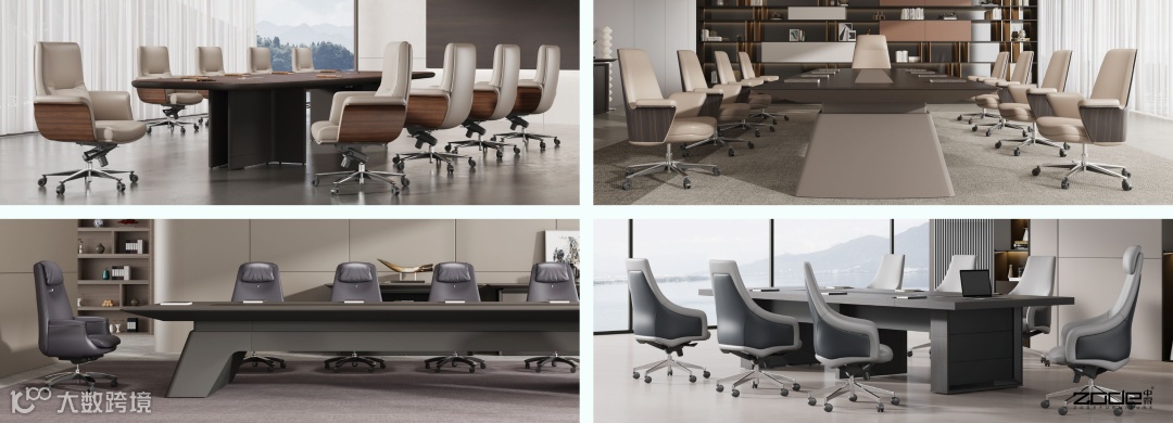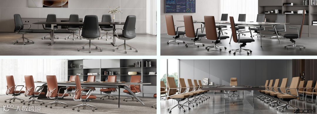 - 现代金属/亚克力轻薄会议台搭配时尚简约皮椅,契合科技型办公审美;