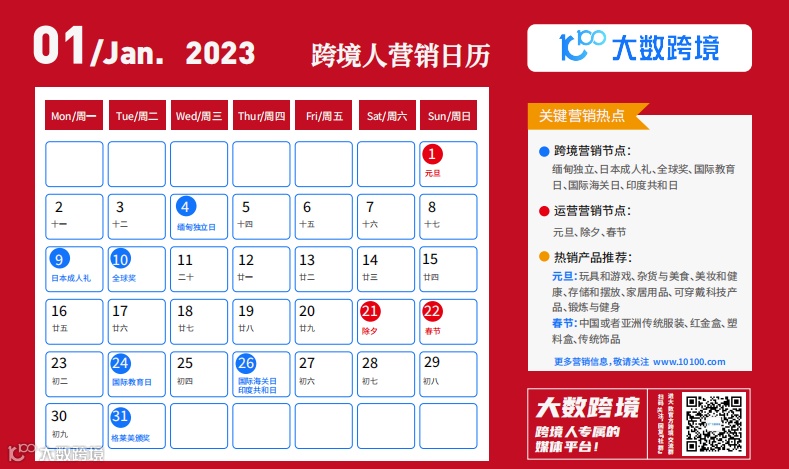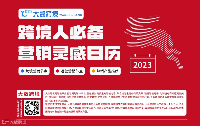 《跨境营销日历》整合2023年全球重要营销节点与配套选品建议,为跨境从业者提供清晰、可落地的运营节奏参考,是出海营销的实用工具。精准匹配节日热点与产品策略,有助于提升转化效率。