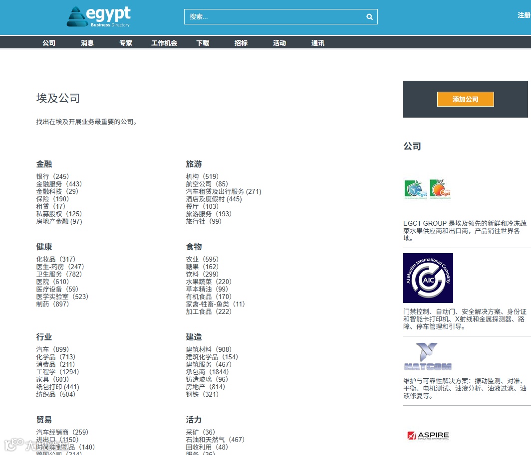 这个是埃及的一个行业黄页网站,进来之后可以看到各个行业的分类,虽然数据不算多,但是质量还是比较高的,一般都是一些比较大的公司,适合找大客户。