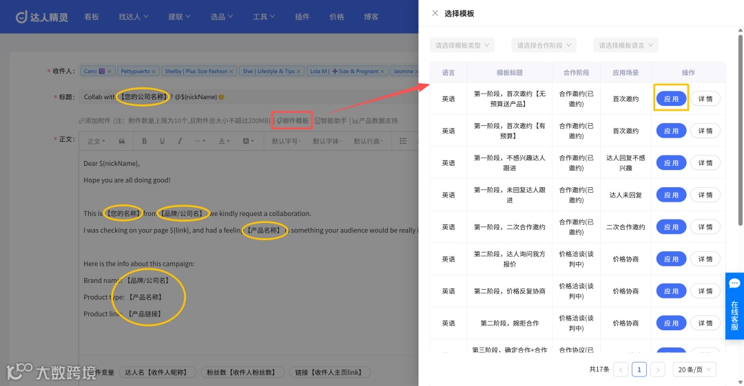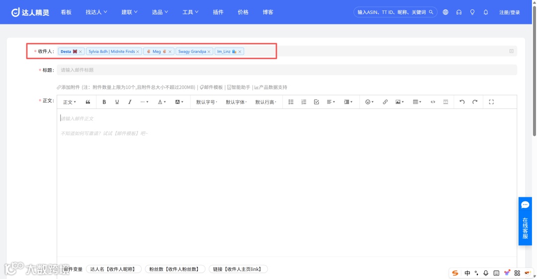 这样,你发出去的每一封邮件,看起来都像「专属定制」,编辑效率提高的同时,有效提高达人回复率。