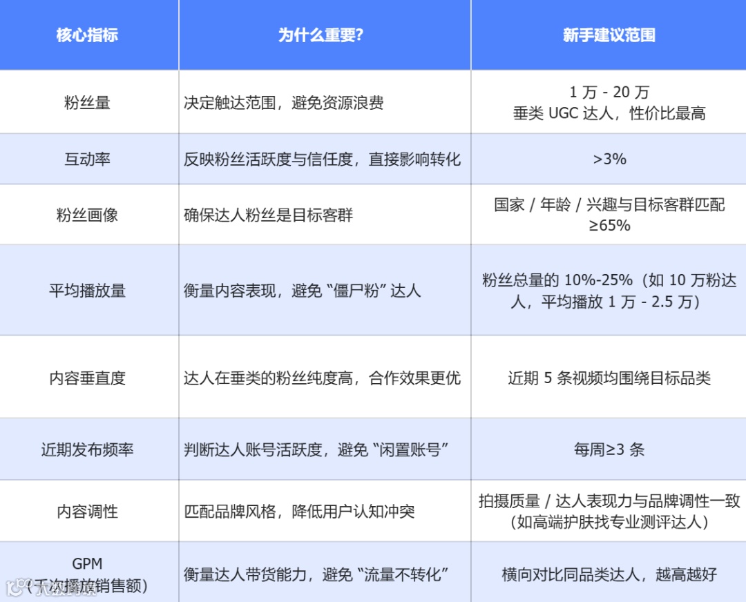 不要再去「凭感觉选达人」,锁定 8 个核心指标,设定明确范围,就能快速筛选优质达人。