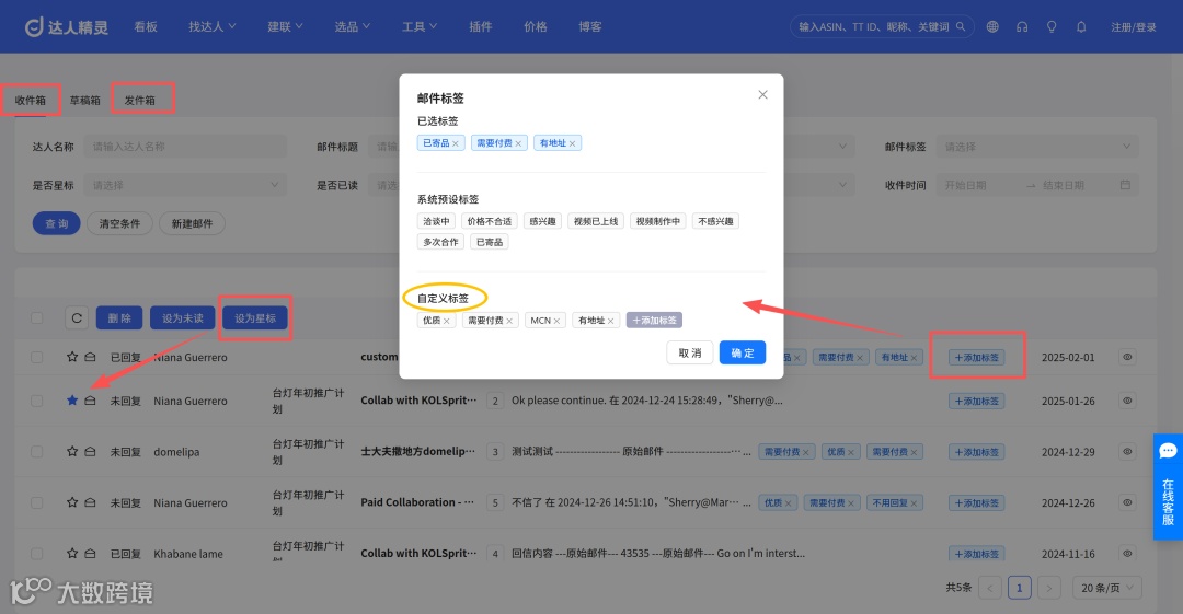 ①实时查看阅读状态:「发件箱」中清晰标注每封邮件的「已读 / 未读」,未读达人可后续用私信补充邀约;