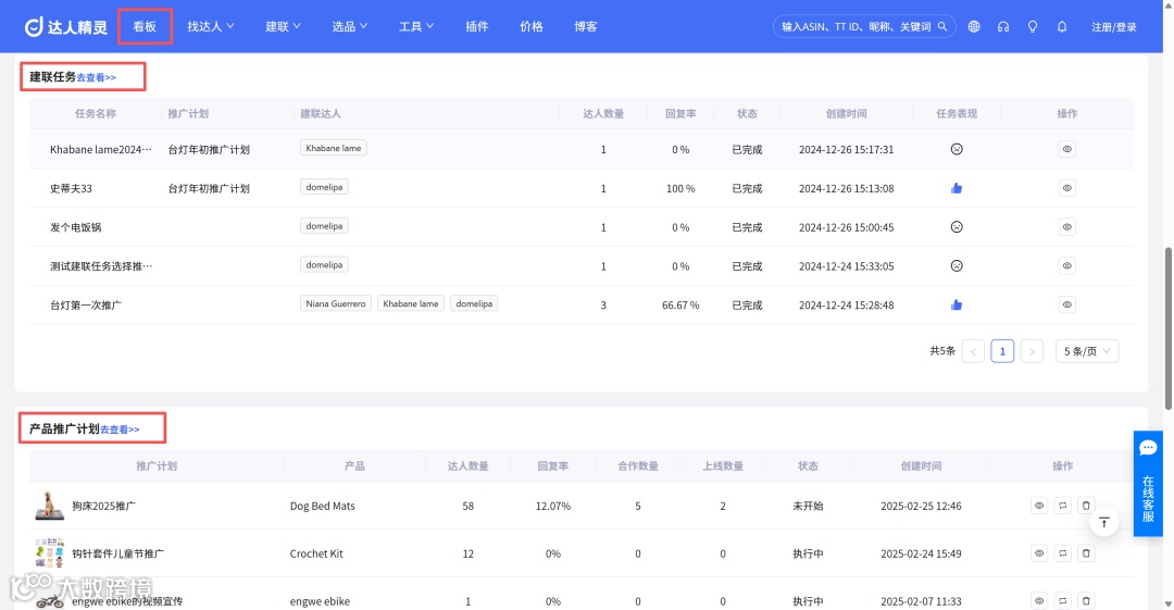 使用「达人精灵」,实现全流程线上追踪,避免遗漏关键节点。