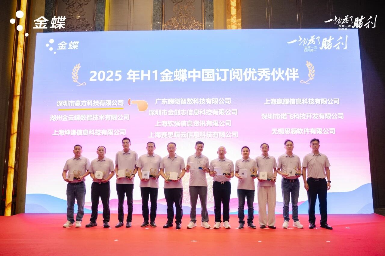 在全国性奖项评选中,赢方科技首先拿下了2025年H1金蝶中国订阅优秀伙伴(TOP1)。订阅业务是数字化服务的重要载体,过去半年里,我们团队围绕客户订阅需求优化服务流程,从需求对接、方案落地到后续运维,始终以客户体验为核心打磨细节,这份TOP1荣誉,是对我们在订阅服务领域扎实付出的肯定。