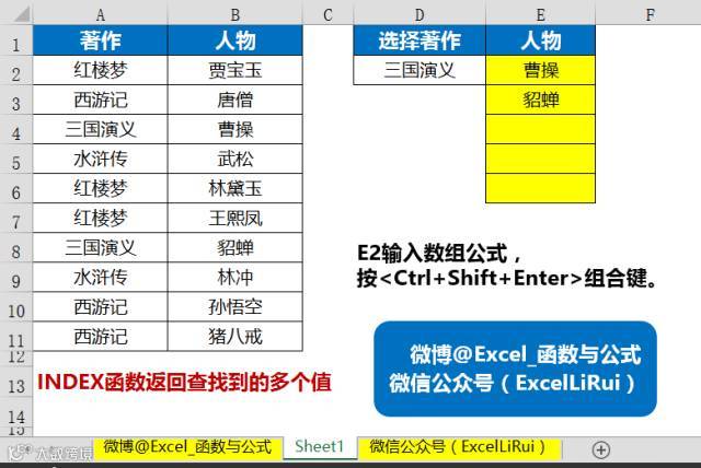 解决一对多查找问题,提取某一著作对应的所有作者: