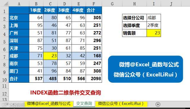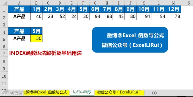 - 行号与列号同时指定时,返回交叉单元格的值。