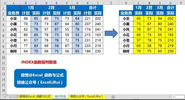 从包含计划与实际数据的多列中提取实际值(每隔一列):