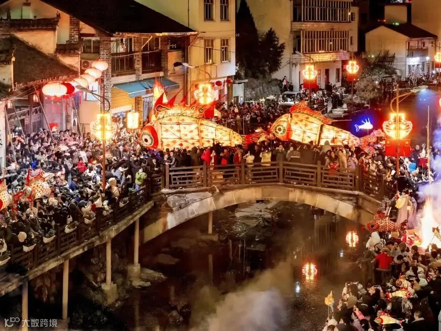 📍黄山:水墨般的景致中,浸润着徽州的千年年味。三江口历史文化街区青瓦白墙,徽州古城底蕴厚重,齐云小镇空灵清幽,处处彰显皖南独特韵味。千年民俗是新年的灵魂所在:灵动的板凳龙穿梭街巷,璀璨的徽州鱼灯点亮夜色,古朴的傩舞演绎岁月悠长,每一幕都藏着徽州的民俗密码。一席家宴更是年味的集中体现,丰盛的徽州八碗八、热闹的岩寺老街长桌宴、鲜香的年猪宴,让醇厚年味在舌尖流转,代代相传。