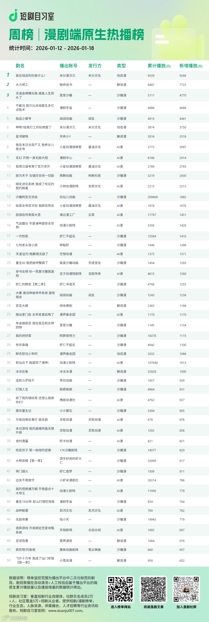 扫描下方二维码可查看更多榜单资讯。(网站同步更新抖音端原生100部漫剧详情)