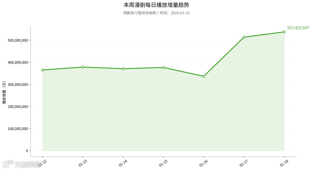 登顶榜单的是久违的动态漫《我花钱返利你急什么?》,但该剧是2025年4月上线的老剧,更新至53集,包含10集免费集,43集付费集,上周播放增量超9266万,为多个漫剧账号的播放增量累加的数据。