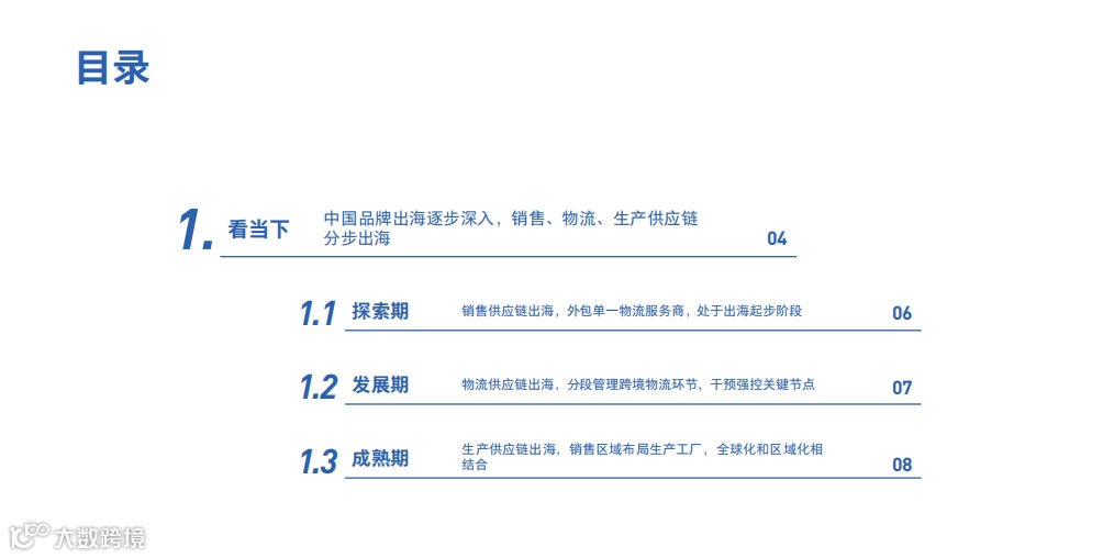 《菜鸟网络2022中国品牌出海跨境物流白皮书》深度剖析电器、家具、美妆、服装四大行业的出海物流痛点与解决方案。当前,中国品牌出海已从销售供应链出海的探索期,迈向物流供应链出海的发展期;部分成熟企业更进入生产供应链出海的成熟期,跨境物流已成为支撑全球化布局的核心支柱。