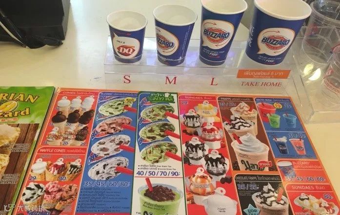 在曼谷Central World购物中心,店内售价如下:原味甜筒小号仅需10泰铢,中杯奥利奥暴风雪只需45泰铢,折合成人民币不超过10元。国内类似产品售价则至少23元起步,并另行收费加料Money Just Can't Buy Happiness.
