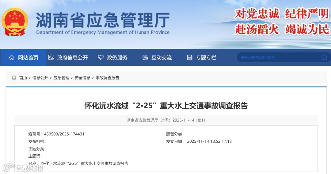 2025年2月25日上午10点左右,湖南怀化沅陵县清浪乡,沅水河面一声巨响,“怀绿水1号”垃圾清洁船与“湘沅陵客0301”客轮猛烈相撞。客船迅速沉没,19人瞬间落水。最终,仅3人生还,15人遇难,1人至今失踪。2160.7万元的直接经济损失背后,是十多个家庭的破碎。