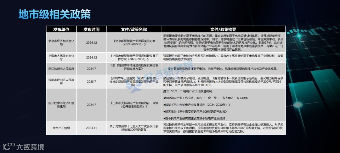 图表10 :近年来我国国家及地方钠离子电池相关政策