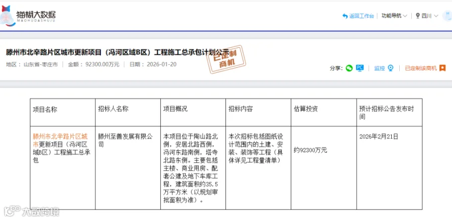 2026年1月20日,枣庄市公共资源交易网发布了滕州市北辛路片区城市更新项目(冯河区域B区)工程施工总承包招标计划公告。该项目总投资9.23亿元,标志着滕州市城市更新建设进入新阶段。此次招标将为建筑行业相关企业带来新的商业机会,特别是对于擅长土建、安装、装饰工程的企业。