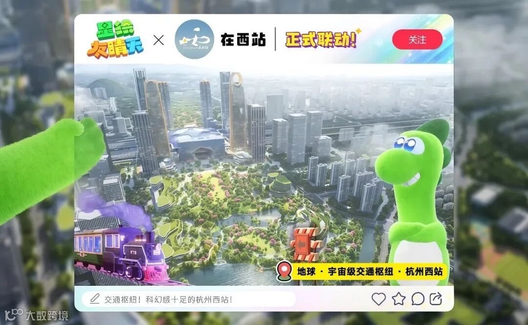 杭州西站,连接多条高速铁路,设计理念独特,是杭州重要的交通枢纽和城市地标。西站的列车已经驶出,下一站是快乐星球的宇宙接驳站!敬请期待~