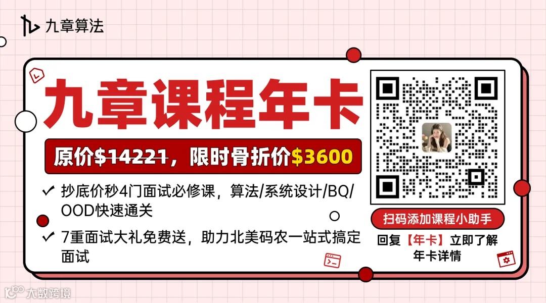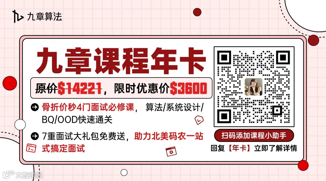 九章课程年卡,精选4门北美码农核心面试课,帮你“一站式”通关北美科技大厂面试,稳赢更“躺赢”~~~
