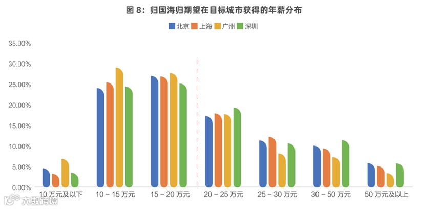 ✅薪资预期趋于理性:大部分海归首份年薪预期集中在10-20万元人民币区间,“海归光环”带来的溢价正在消退。