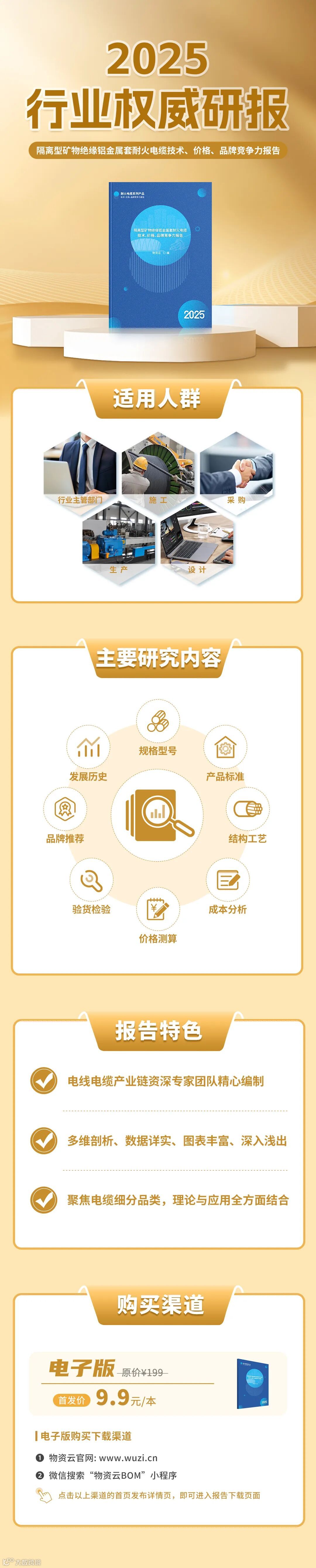 当前,耐火电缆市场制造企业众多,产品标准千差万别,质量参差不齐,价格上没有参考,品牌评价有待完善,客观上给行业从业者带来不小困扰。为全面解析耐火电缆的技术、价格、品牌竞争力,物资云联合《耐火电缆设计与采购手册》编委会特别编写了这套《耐火电缆系列产品技术、价格、品牌竞争力报告》(2025 年度)。