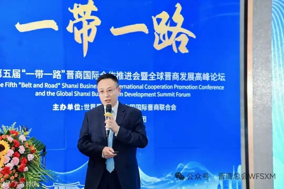 下午全球晋商发展高峰论坛由世界晋商总会执行副主席、徐州山西商会会长郭佳主持,山西省工商联原副主席郎宝山,山西省政协常委山西省天星集团董事长王豪文,振东制药股份有限公司董事长李昆,澳中企业联合会会长凌众保,国家发展研究理事会副理事长加拿大晋商联谊会会长张钟玺,马来西亚晋商总会会长赵元玮,深圳航空业协会秘书长、深航协低空生态委员会秘书长刘斌,昆明晋商商会会长秦英分别就“一带一路”、新质生产力在自己所在的国家及行业进行了分享。