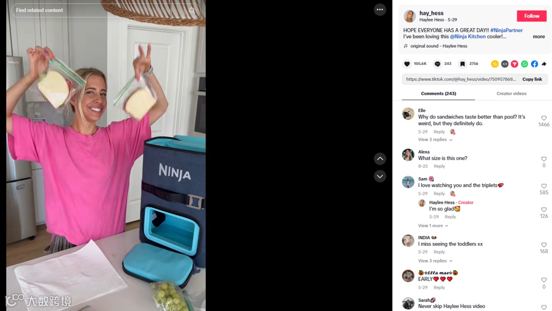 @hay_hes是一位专注于分享家庭生活内容的TikTok博主,其账号持续输出日常家庭互动、家居技巧与温馨生活片段,风格真实自然,充满亲和力,极易引发观众的情感共鸣,其内容调性与Ninja所倡导的“提升家庭生活品质”理念高度契合。