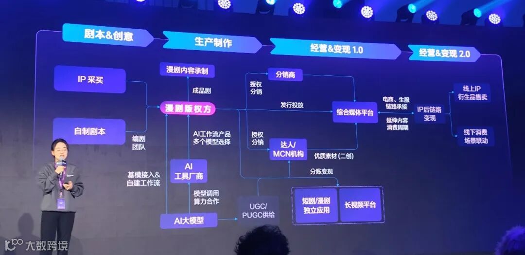 • 中游:多渠道发行与分账。将内容授权给发行方,通过达人、MCN及综合媒体平台进行投放,最终实现分账变现。