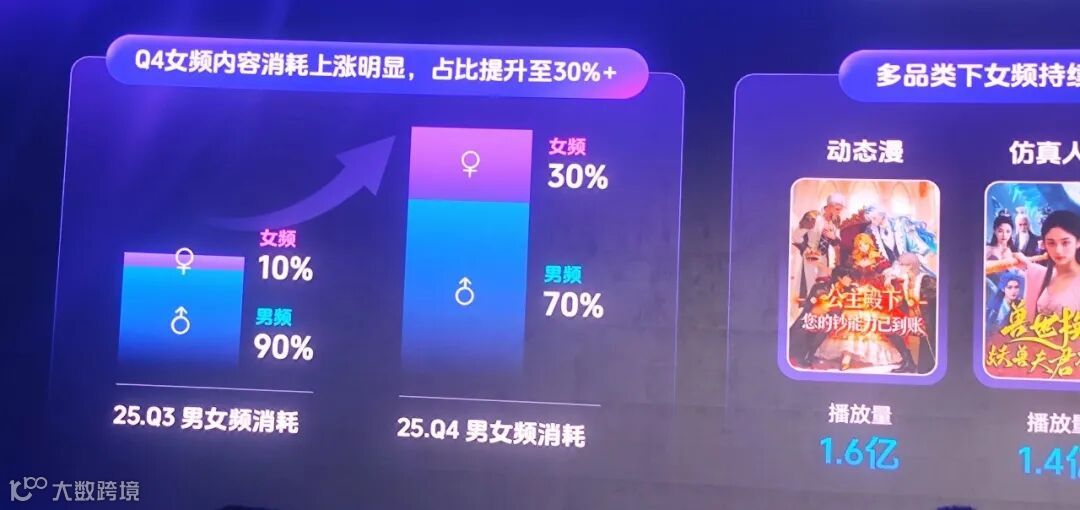 数据上,2025年四季度的女频内容消耗上涨明显,占比从Q3的10%,提升至Q4的30%+。