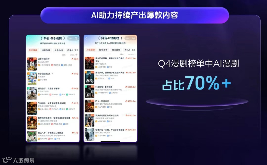 从技术环节来看,AI正在助力持续产出爆款内容,Q4漫剧榜单中AI漫剧占比70%+。