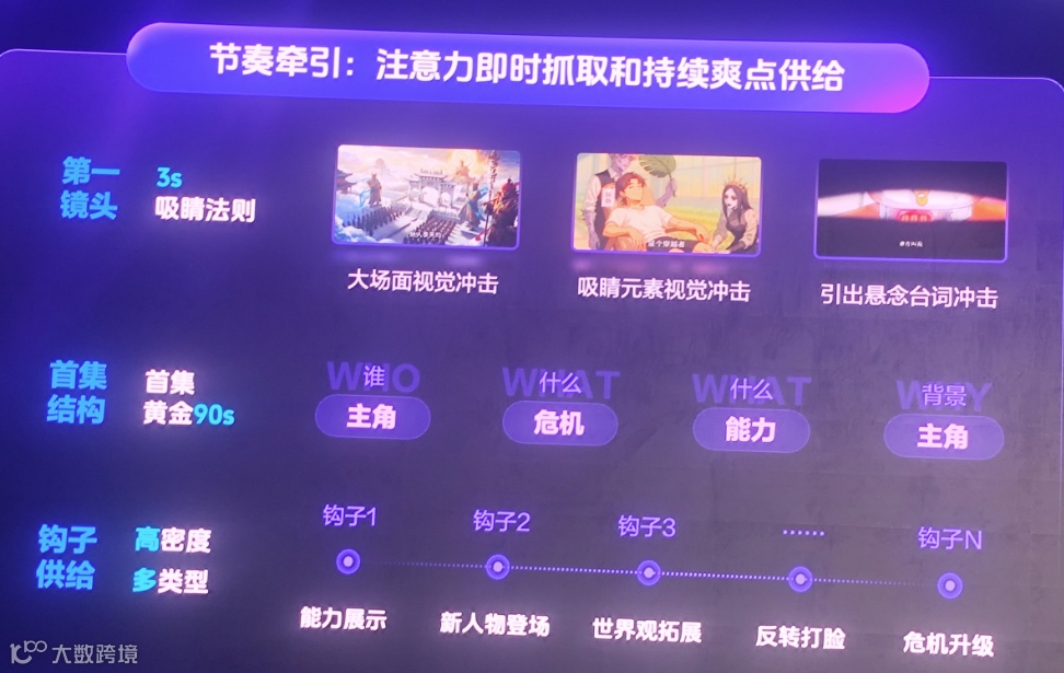 密集钩子结构:在首集的黄金90秒内,必须快速确立主角,并连续设置高密度的多类型钩子(如能力展示、新人物登场、反转打脸、危机升级等),形成持续的爽点供给。