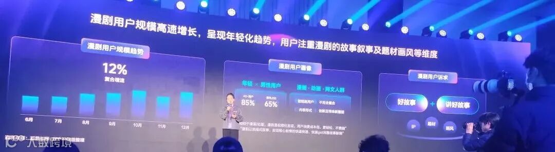 显然,漫剧在过去一年的发展增速肉眼可见,这场活动透露的很多市场动态和行业数据也同样可以佐证这一“新次元”的活力。因此,基于此次活动的分享,短剧自习室把重点干货内容梳理如下: